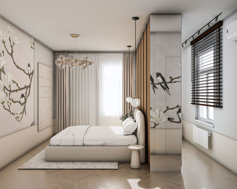 Utilizarea spatiilor se transpune si in paletele de culori folosite, astfel in zona de zi gasim cateva accente de culoare precum si multe relatii intre materiale diferite pe cand in dormitor, paleta de culori este mai inchisa.